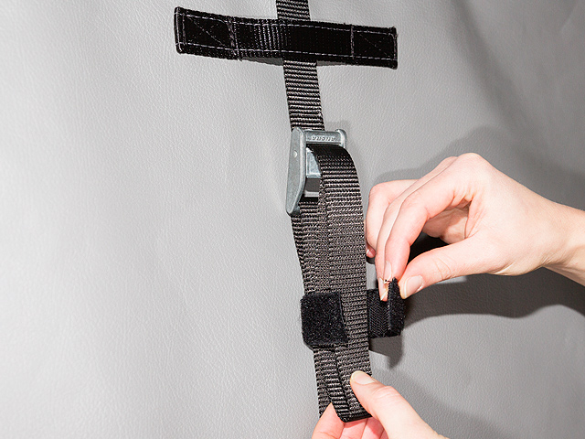 Das Gurtende lässt sich mit Klettverschluss schnell und einfach sichern.