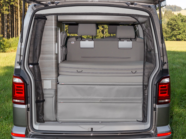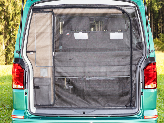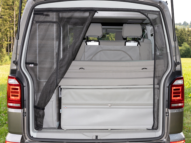 Dies ist sehr praktisch im Camping-Einsatz und Alltag: Das Moskitonetz kann einsatzbereit am Fahrzeug angebracht bleiben, weil es nicht stört.