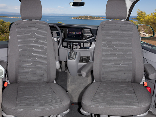Brandrup Second Skin für Fahrerhaussitze (nur für Sitze ohne elektrische Einstellung) VW T6.1 Multivan / California Beach im Design „Circuit/Titanschwarz“