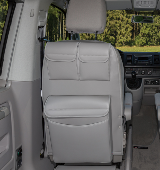 Brandrup UTILITY mit MULTIBOX Maxi für Fahrerhaussitze VW T6/T5 California Beach / Multivan. Design VW T6 "Leder Moonrock"