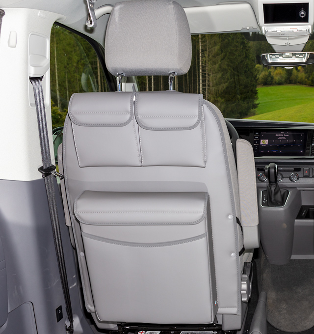 Produktinformationen "Brandrup UTILITY mit MULTIBOX Maxi für Fahrerhaussitze VW T6.1/T6/T5 California Beach / Multivan, Design VW T6.1 „Leder Palladium“"