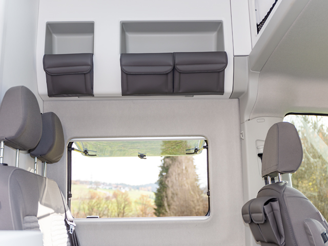 Brandrup UTILITY mit zwei Taschen für den Ablageschrank rechts über der Sitzgruppe des VW Grand California 680,