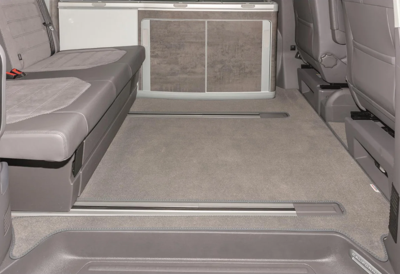 Produktinformationen "Brandrup Veloursteppich Fahrgastraum, einteilig, 3 Bodenschienen, alle VW T6.1 California (ohne Beach), "Palladium""
