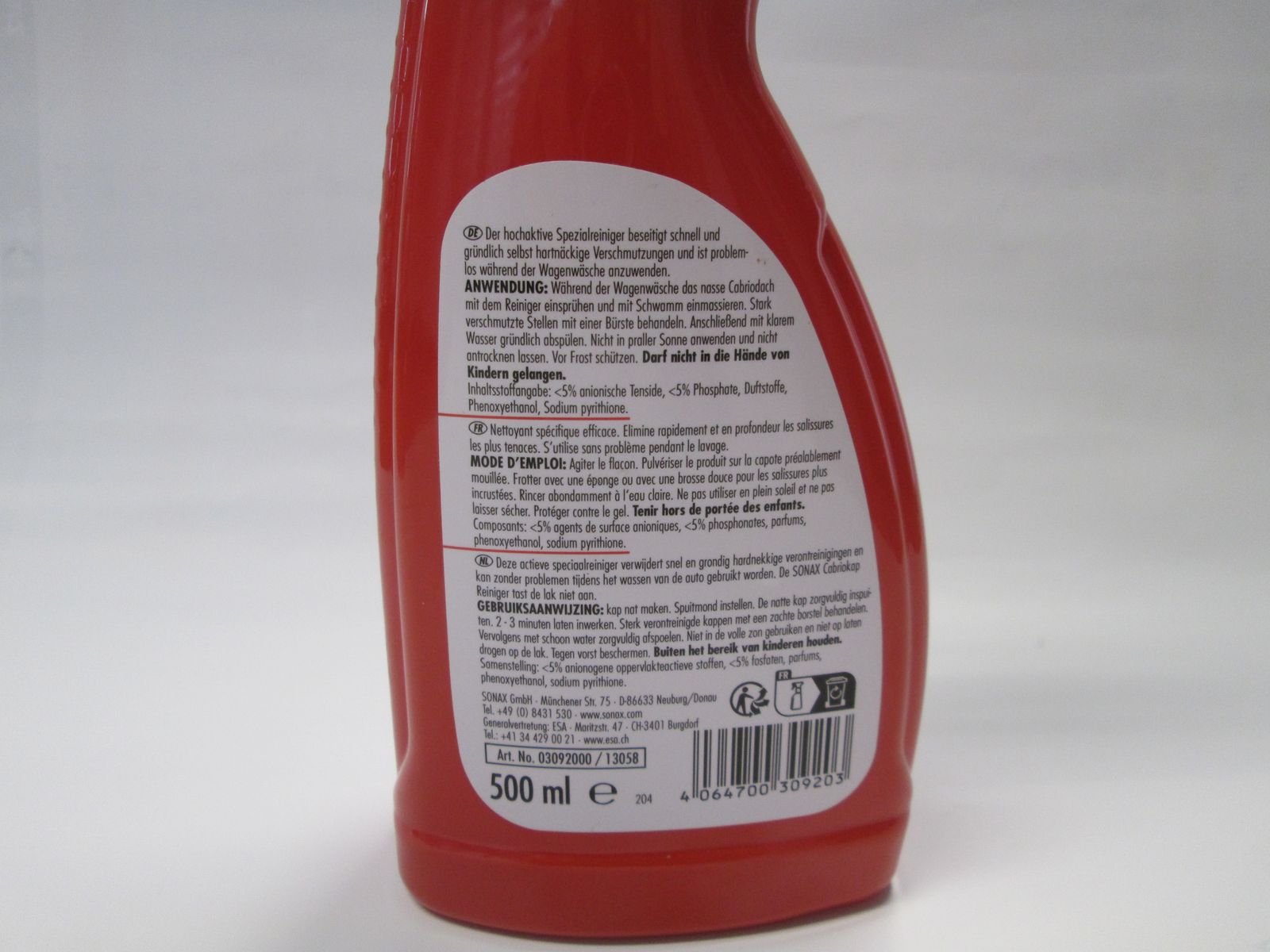 Produktinformationen "Cabrioverdeck Reiniger SONAX 13058 Spezialreiniger Z 096174A"