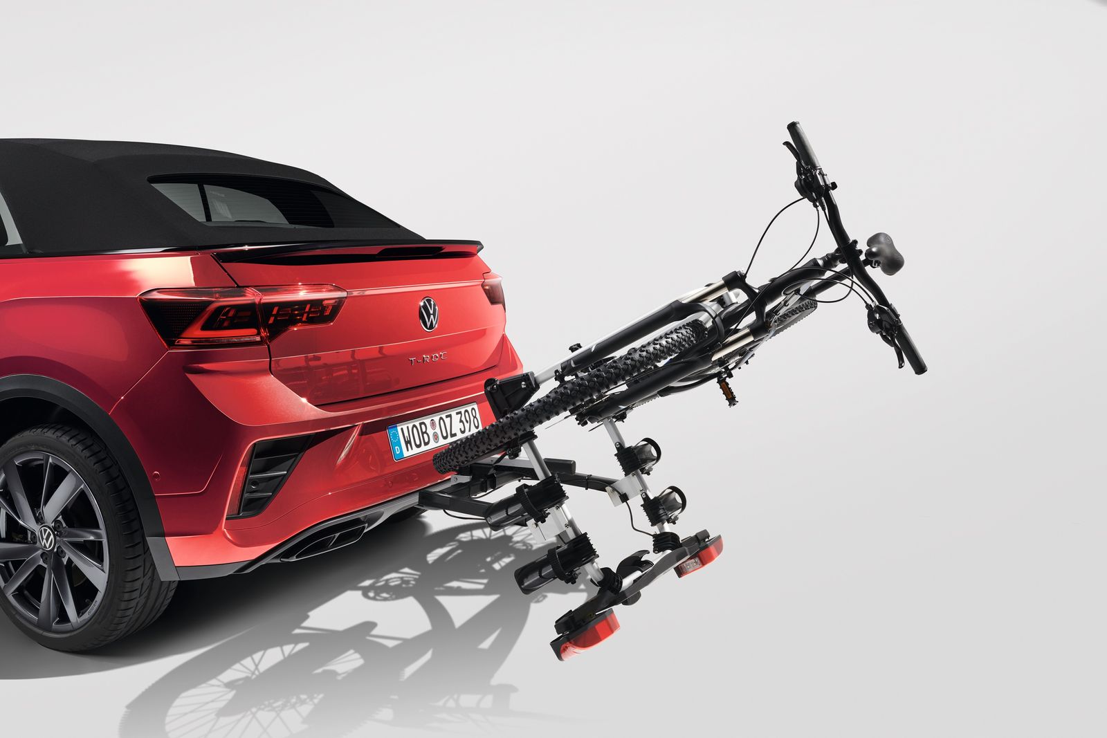 zum Beispiel im Gepäckraum verstauen. Mit dem neu entwickelten Fußschalter gelingt das Abklappen am Fahrzeug – auch mit Fahrrädern – besonders einfach,