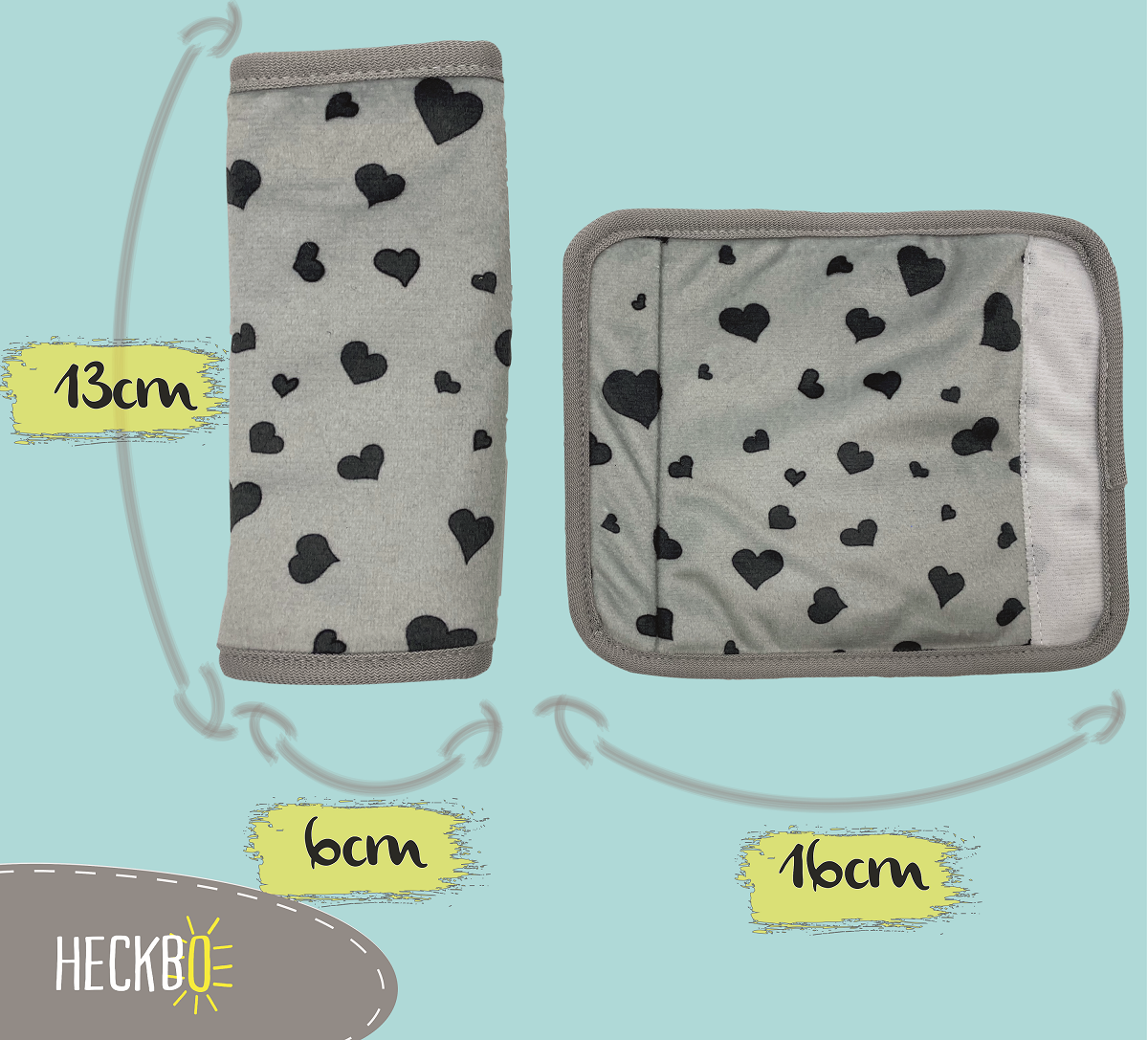 ► BABY GURTSCHONER MIT SCHÖNEM MOTIV: Sie erhalten zwei HECKBO Baby Gurtschoner, auf denen jeweils ein modernes Design mit schwarzen Herzen aufgedruckt ist. Der hellgraue Hintergrund passt perfekt zu den meisten Babyschalen oder Kindersitzen.