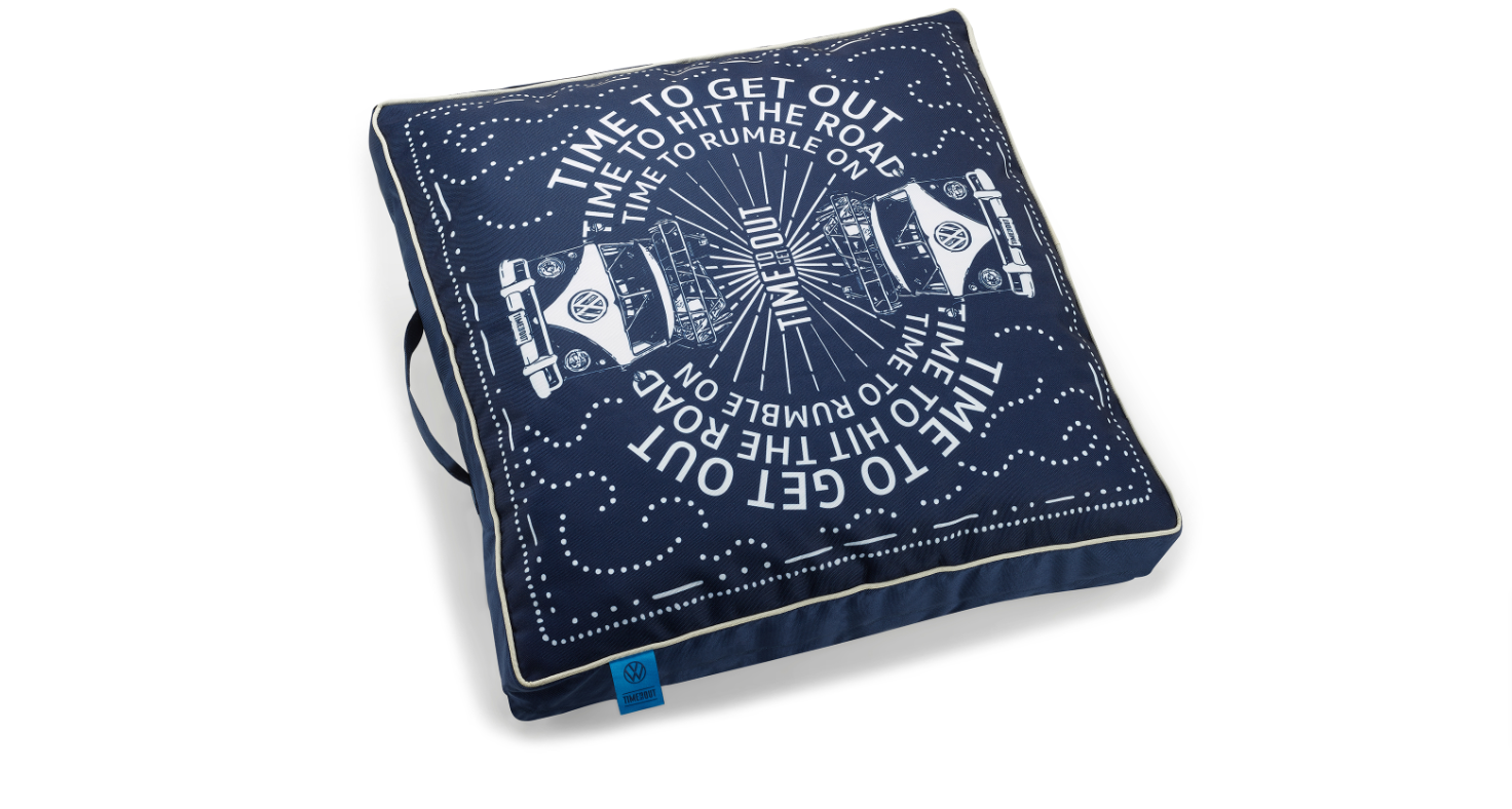 Kissen „T1 Time to Get Out“ 7E9069691Blau-Weiß, wasserabweisend, Heritage Kollektion - robustes, wasserabweisendes Sitz- oder Rückenkissen- mit farblich passendem Innenkissen- der Außenbezug ist komplett bedruckt mit dem kultigen „T1 Time to Get Out“ Motiv- zu verwenden auf allen Arten von Sitzmöbeln oder auf dem Fußboden- in Kombination lässt sich mit 2 Kissen (Sitzfläche und Rückenlehne) eine gemütliche Sitzposition erzielen- durch die Trageschlaufe lässt sich das Kissen bequem transportieren- die wasser- und schmutzabweisende Oberfläche lässt sich mit einem feuchten Tuch ganz einfach reinigen- ein Reißverschluss ermöglicht es, das Inlett aus der Hülle zu nehmen, um den Außenbezug in der Maschine zu waschen- der Reißverschluss wurde verdeckt angebracht, so dass er beim Sitzen nicht stört- die Pflegehinweise gelten für den Außenbezug. Das Innenkissen ist nicht waschbar