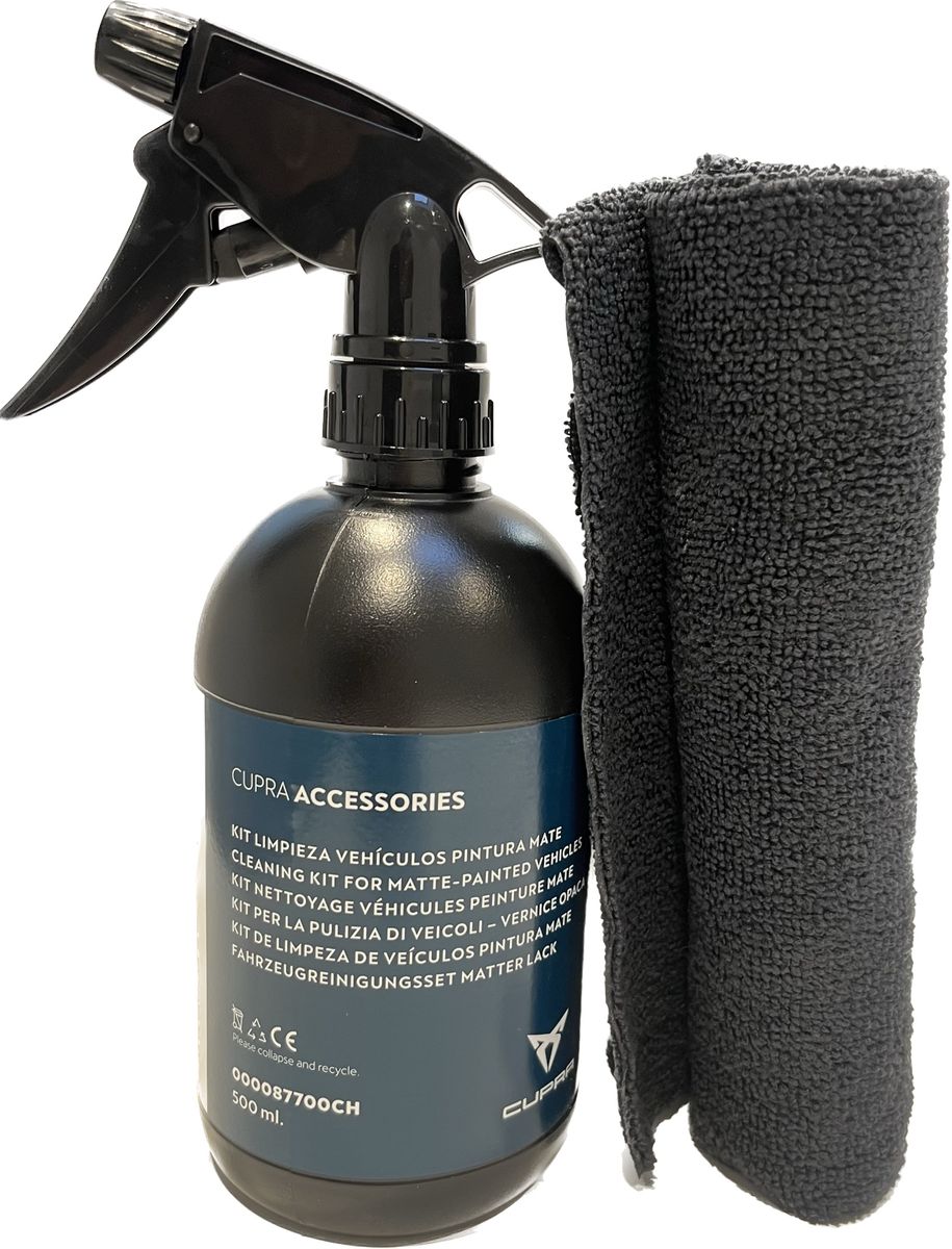 Spray und Mikrofasertuch für die Reinigung und Pflege von Mattlackierungen und nicht porösen Oberflächen im Innenraum. Erlaubt die rasche und sichere Entfernung von verkehrsbedingten Verschmutzungen, Staub, Insektenrückständen und Vogelkot, Baumharz, Ölen, Fett (Fingerabdrücken) und Kunststoff. Artikel Nr. 000087700CH