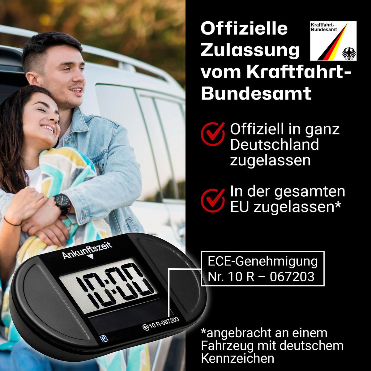 Park Lite Solar besitzt die Zulassung vom Kraftfahrt-Bundesamt (ECE-Genehmigung Nr. 10 R – 067203).