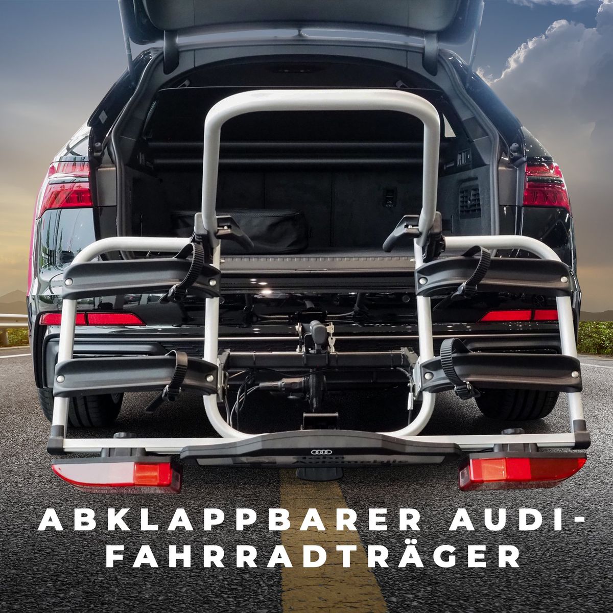 BITTE BEACHTEN – Der abklappbare Audi-Fahrradträger sollte nur in Verbindung mit Stahl-Anhängervorrichtung genutzt werden und ist nicht für Alu-Anhängevorrichtung geeignet.