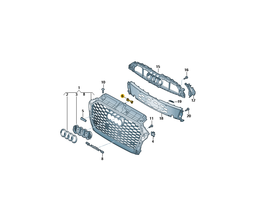 Original Audi Befestigungselement für die Rückseite am Kühlergrill des Audi RS3