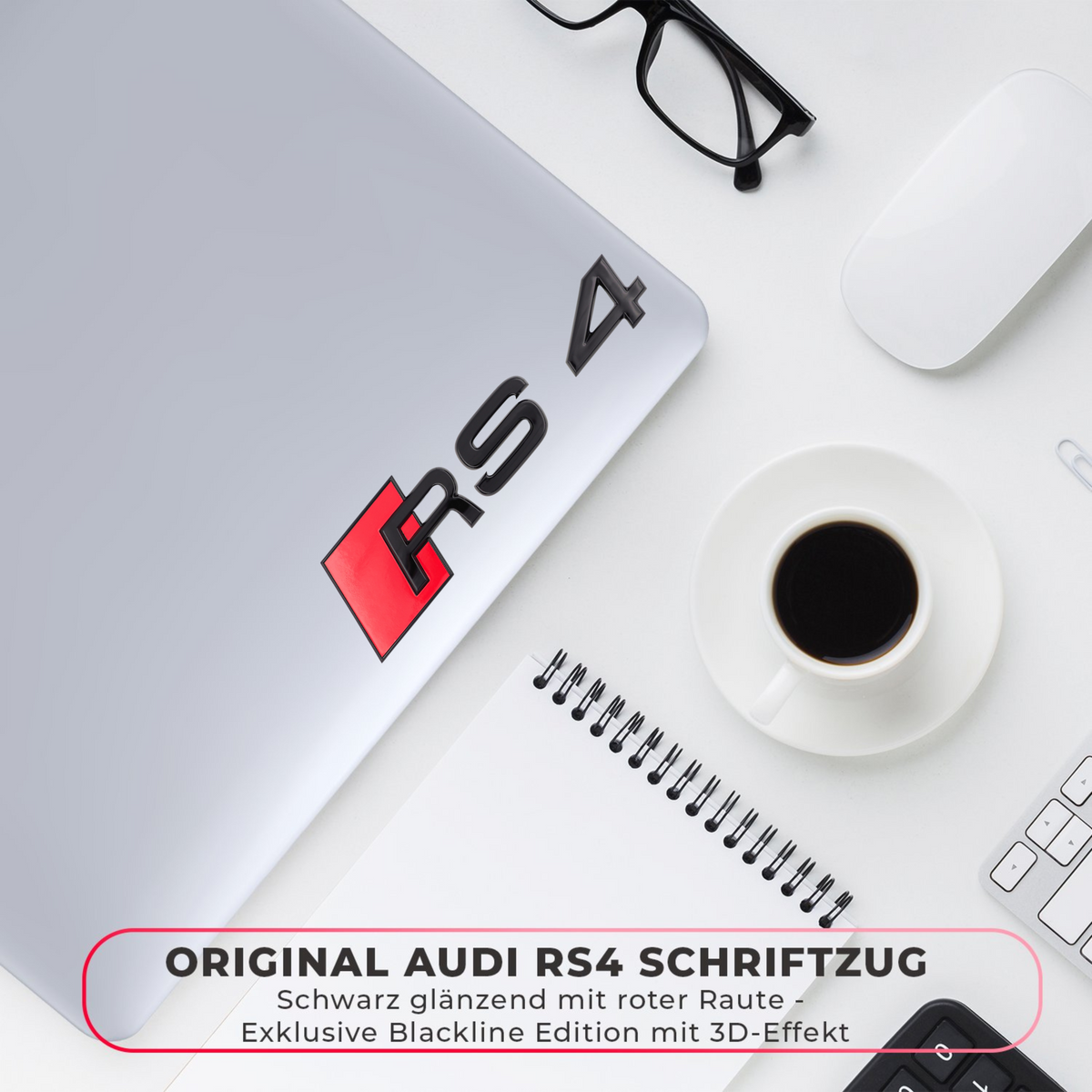 Originales Audi RS4 Schriftzugpaket in schwarz glänzend