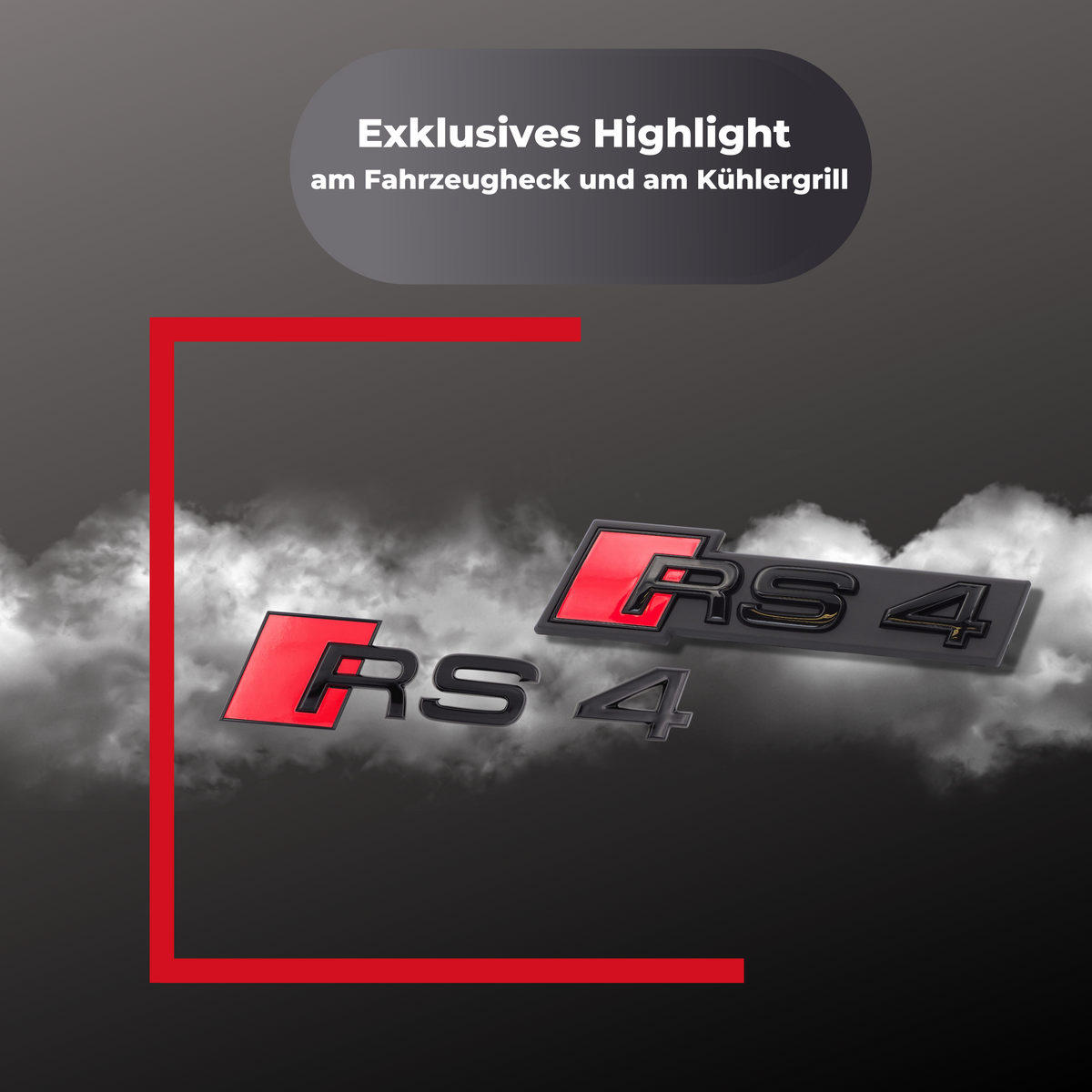 - OPTISCHER HINGUCKER – Exklusives Highlight am Fahrzeugheck und am Kühlergrill in der Farbe Schwarz glänzend und Rot in höchster Verarbeitungsqualität.