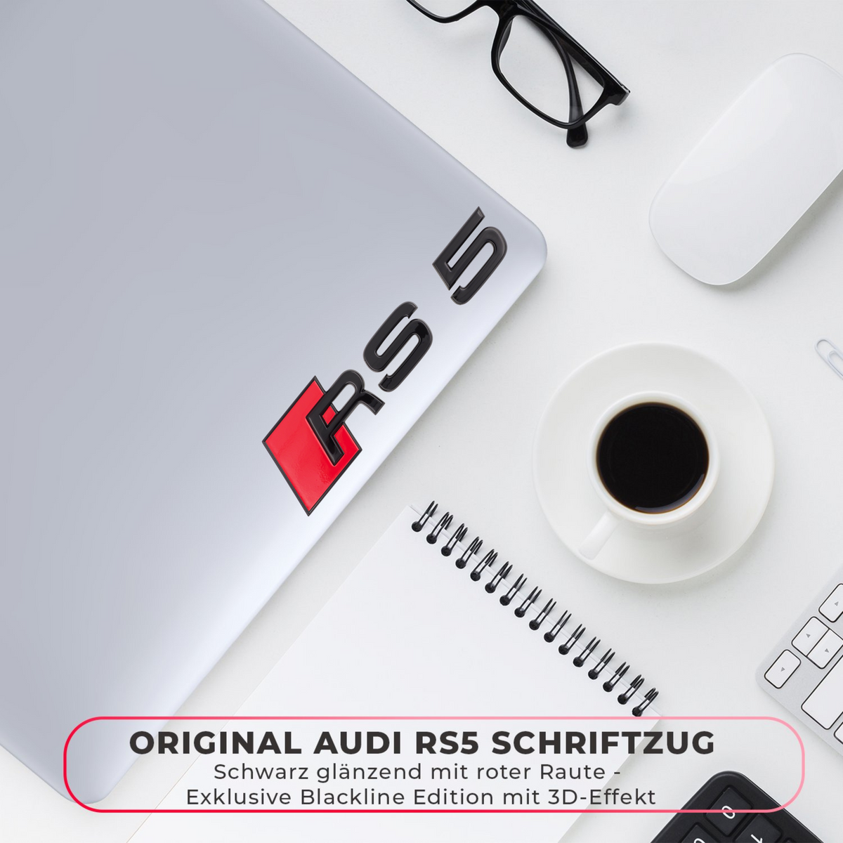 Originales Audi RS5 Schriftzugpaket in schwarz glänzend