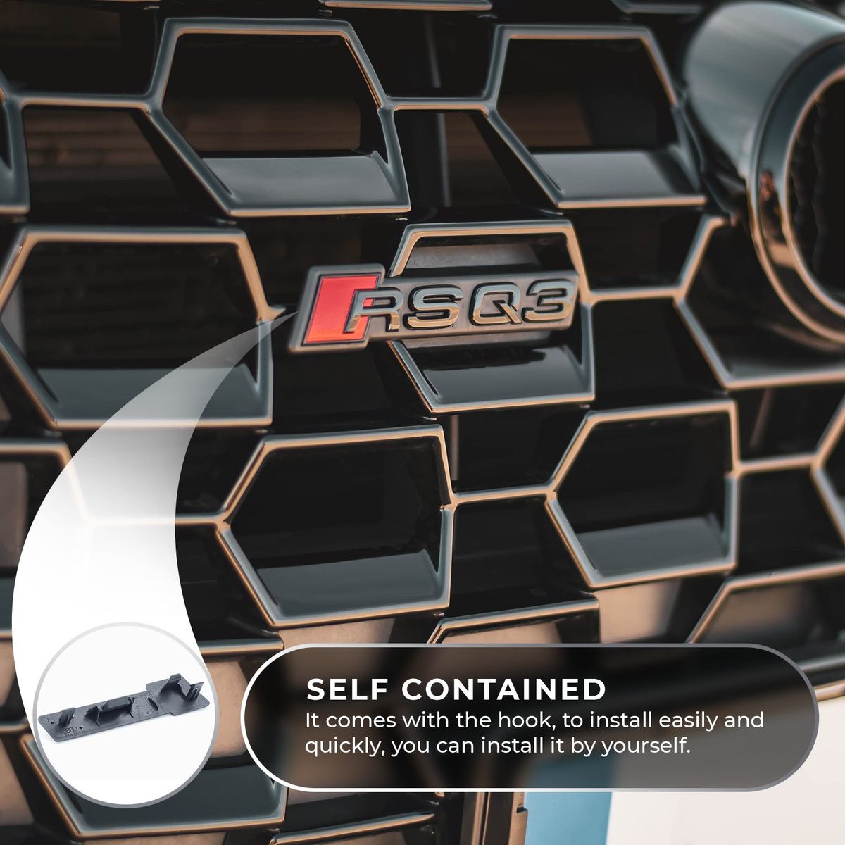 1x Schriftzug RSQ3 schwarz glänzend vorne für den Kühlergrill (83A853736A T94) / Befestigungselement für die Rückseite am Kühlergrill separat erhältlich!