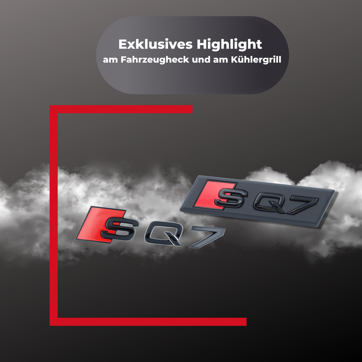 - OPTISCHER HINGUCKER – Exklusives Highlight am Fahrzeugheck und am Kühlergrill in der Farbe Schwarz glänzend und Rot in höchster Verarbeitungsqualität.
