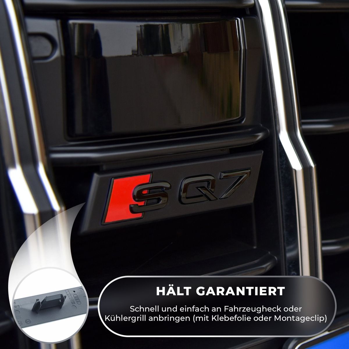 1x Schriftzug SQ7 schwarz glänzend vorne für den Kühlergrill (4M0853748B T94)