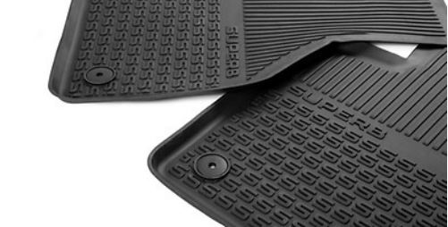 Die Allwetter Fußmatten mit hochgezogenem Rand sind exakt auf die Maße des vorderen Bodenbereichs im Škoda Superb abgestimmt.
