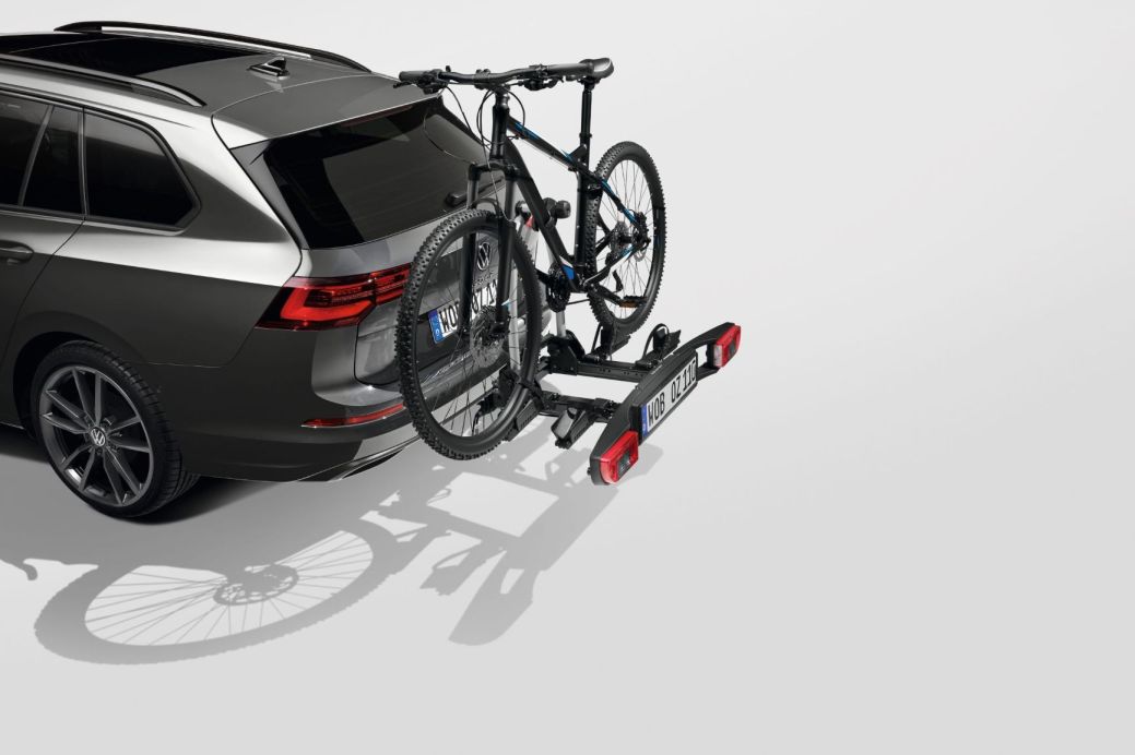 | Fahrradträger für die Anhängevorrichtung Der Fahrradträger Basic zum Transport von zwei Fahrrädern oder E-Bikes besticht durch seine innovative Befestigung. Durch das einfache senkrechte "aufschieben" des Trägers mit anschließendem "nach unten klappen" fixiert sich der Träger automatisch auf dem Kugelkopf. Der patentierte hebellose Verschluss ermöglicht eine kraftsparende und einfache Montage. Die innovativen, abnehmbaren Abstandhalter mit Diebstahlsicherung machen den Träger besonders bedienungsfreundlich. Der Träger läßt sich auf ein sehr kleines Packmaß komplett zusammenklappen und im Kofferraum verstauen. Der Träger ist am Fahrzeug nicht abklappbar. Der Original Kennzeichenhalter mit Schriftzug Volkswagen rundet den Basic Träger ab. |