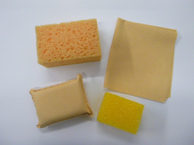 Darin enthalten sind ein Universalschwamm, ein Autoschwamm, ein Insektenentfernerschwamm sowie ein Fenstertuch.