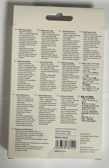 Produktinformationen "Original VW USB-Verbindungskabel USB-C auf Apple Ladekabel 000051446AC"