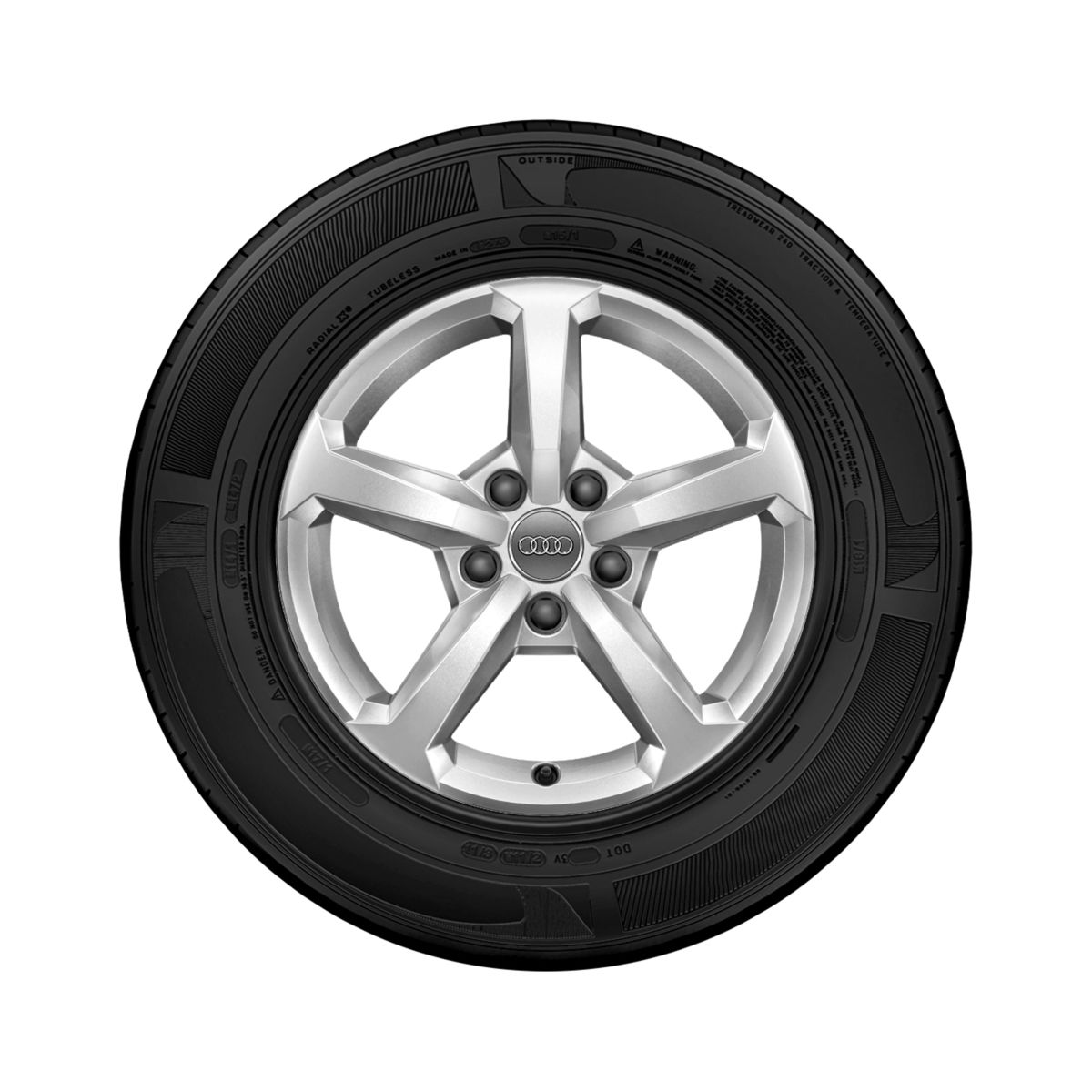 Audi Original Sommerradsatz Rad, 5-Parallelspeichen brillantsilber, 8,0Jx17, Reifen 225/45 R17 91Y